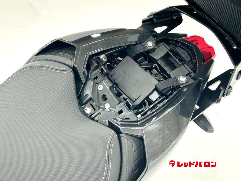 ETC(JRM21)、USB(A・C)、Rキャリヤ(SWモテック)、スライダー(アクスル・フレーム)、レバーガード装備