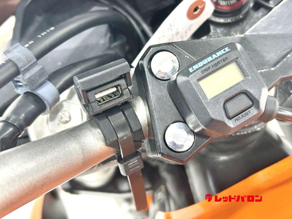スモークバイザー、エンデュランス製グリップヒーター、アジャストレバー、スライダー、リアフェンダーレス、デイトナUSB1ポート、プロテック製シフトインジケーター