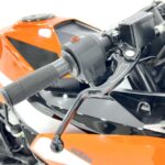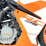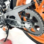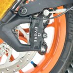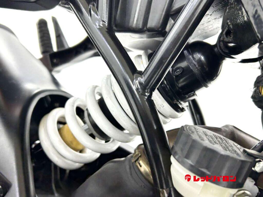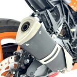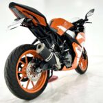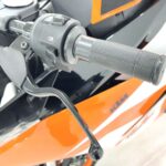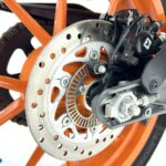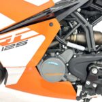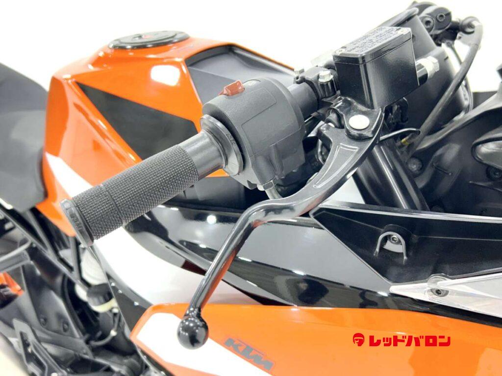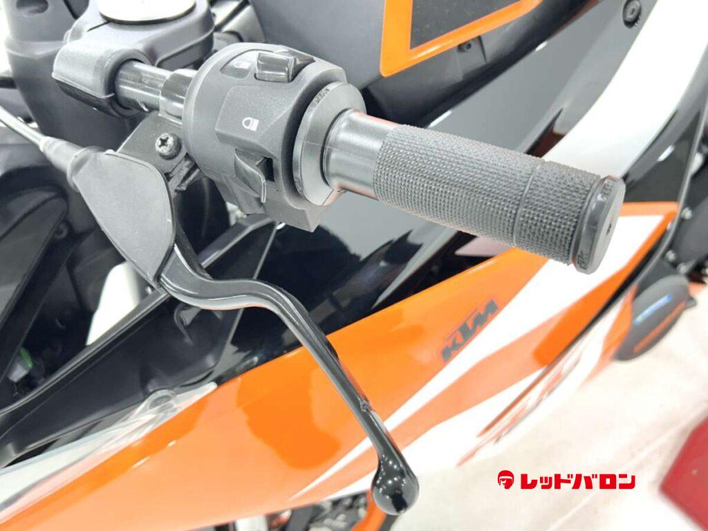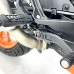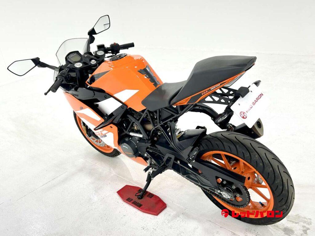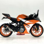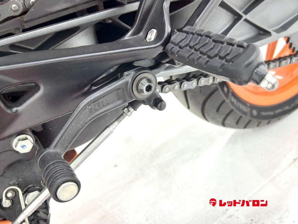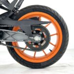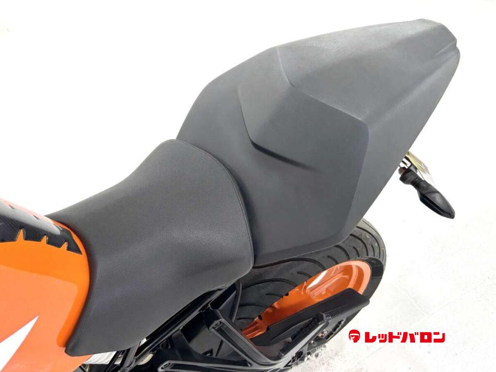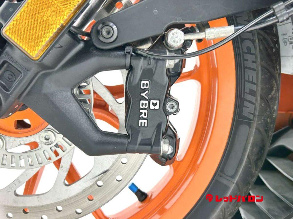 125デュークに比べてホイールベースが短く、更にフロントには倒立フォークを装備している一台です
