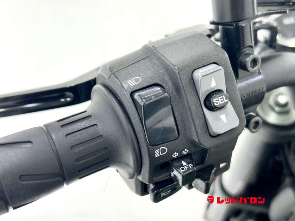 カスタムシート、フェンダーレス、ETC、グラブバー、エフェックスハンドル、バックステップ、スライダー付きの逆輸入車
