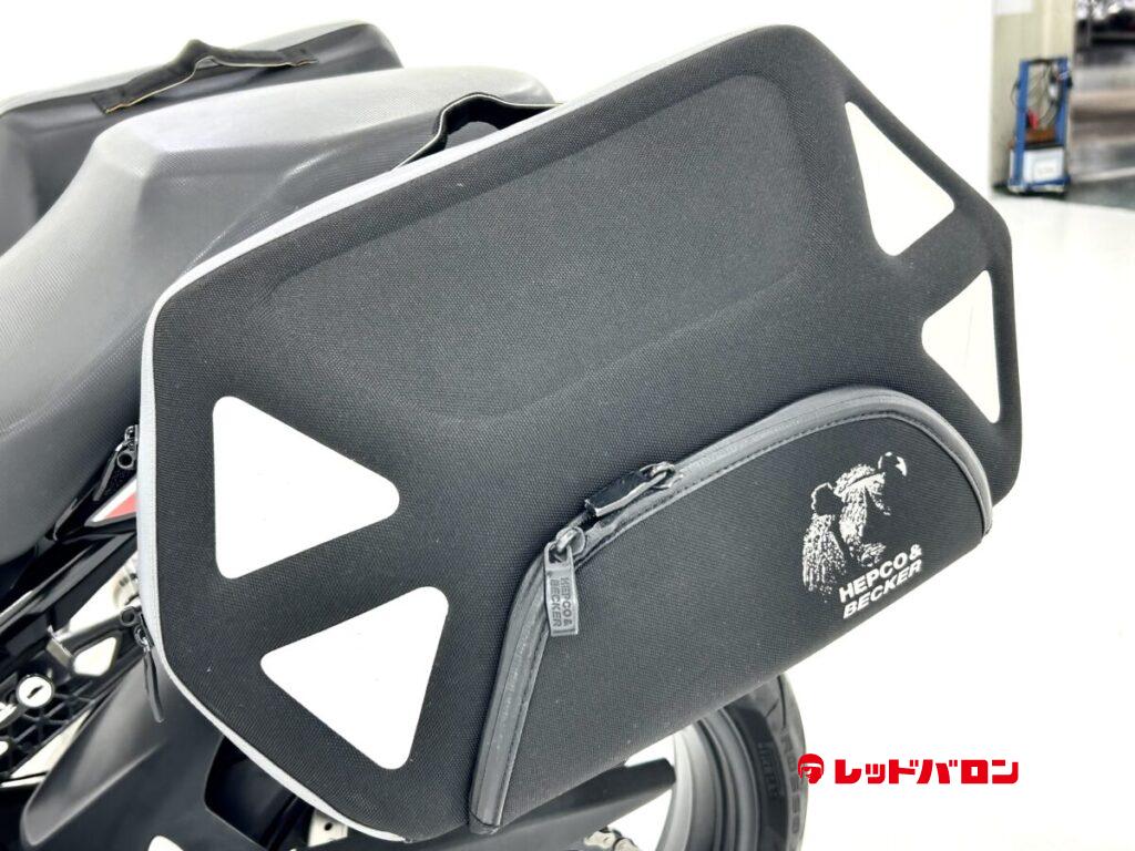 ヘプコ&ベッカー製サイドバック、社外スクリーン、マフラーガード、ハンドガード、USB、ETC装着済